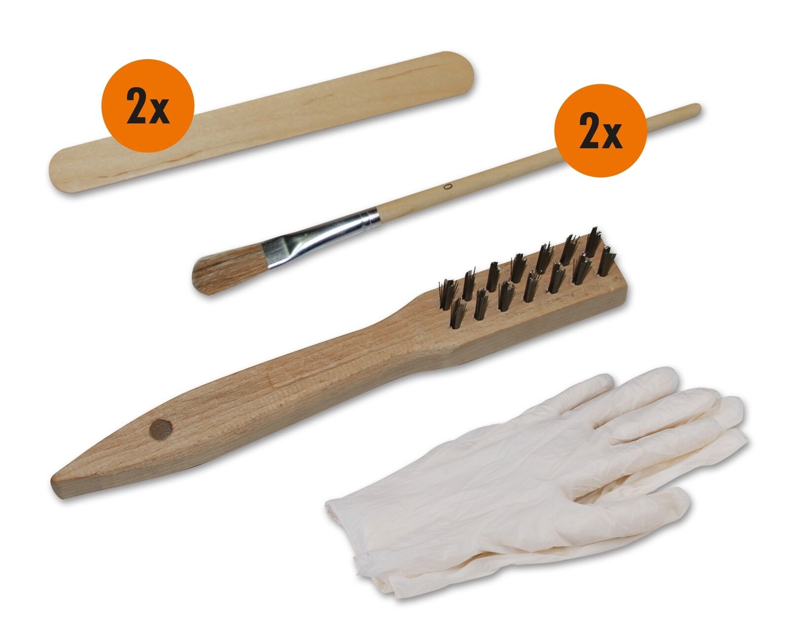 - inkl. Montagematerial: 1 x Stahlbürste, 2 x Einweg-Schutzhandschuhe, 2 x Pinsel, 2 x Spatel
