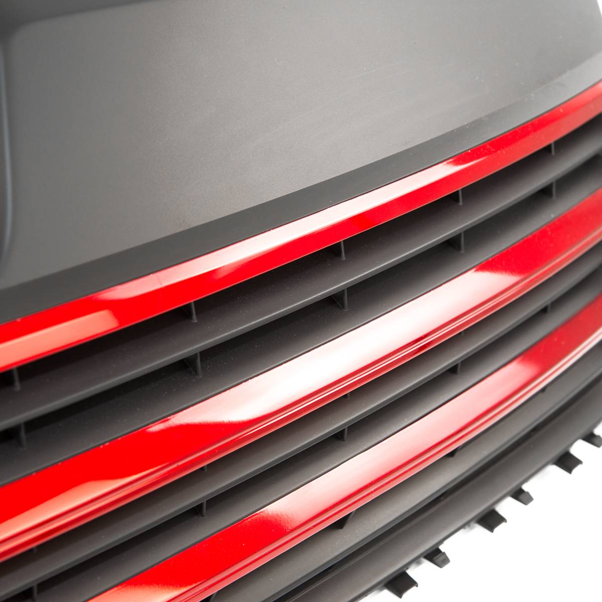 - Kühlergrill ohne Emblem in Schwarz Hochglanz mit roten Leisten