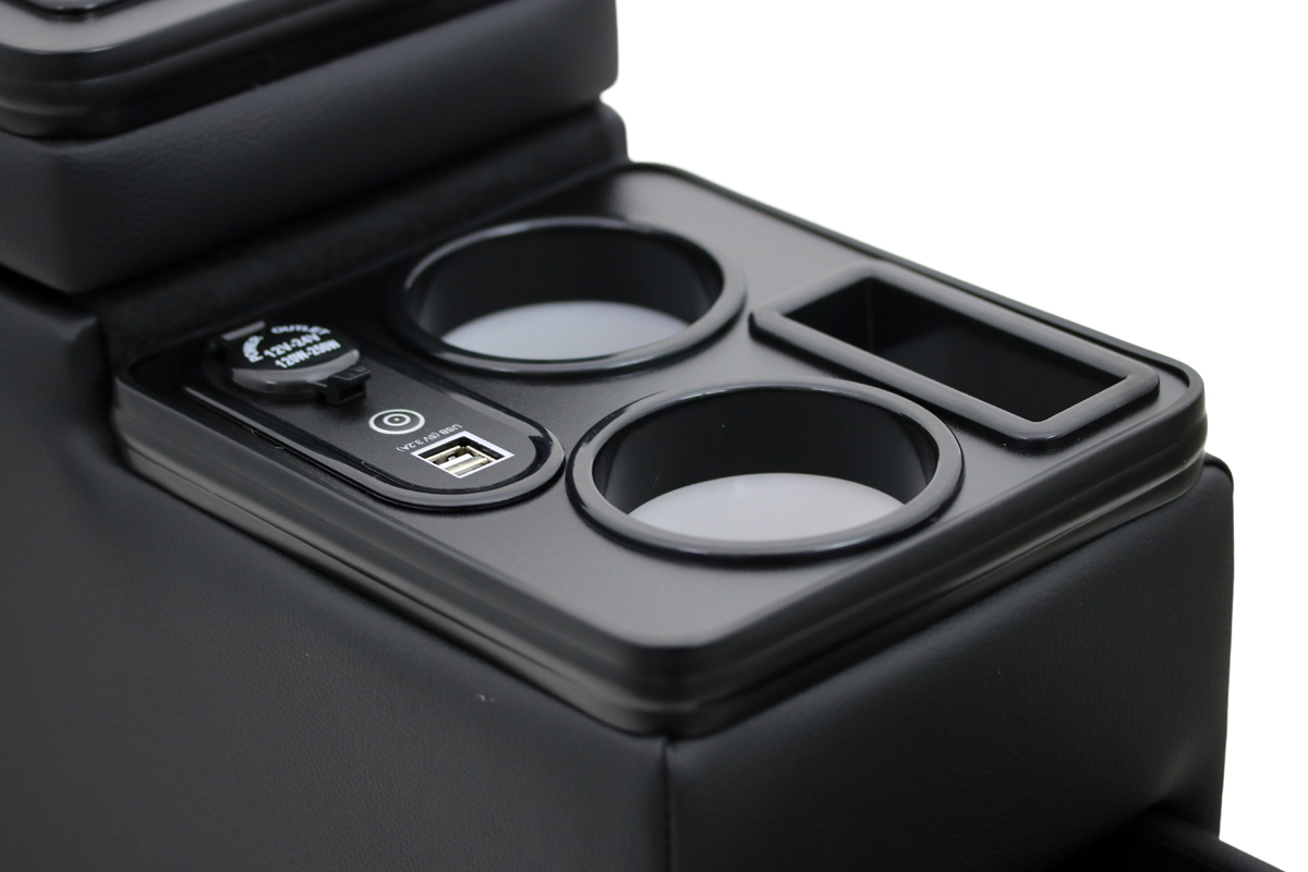 - praktische Getränkehalter und Ablagefächer